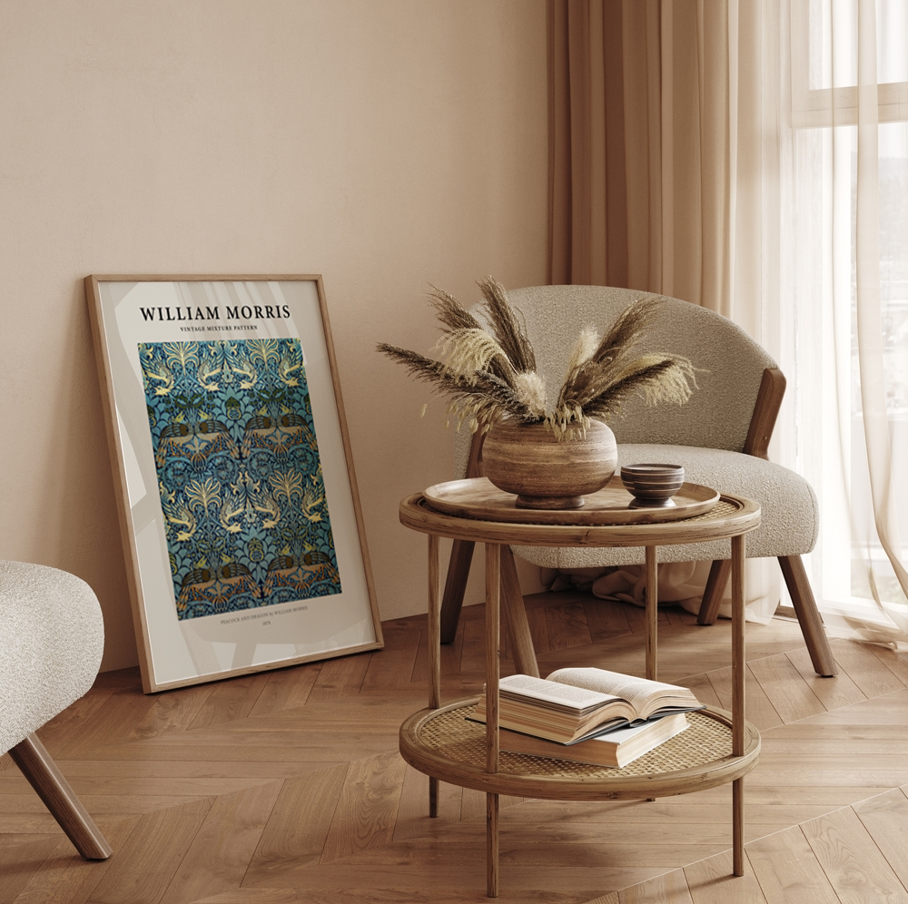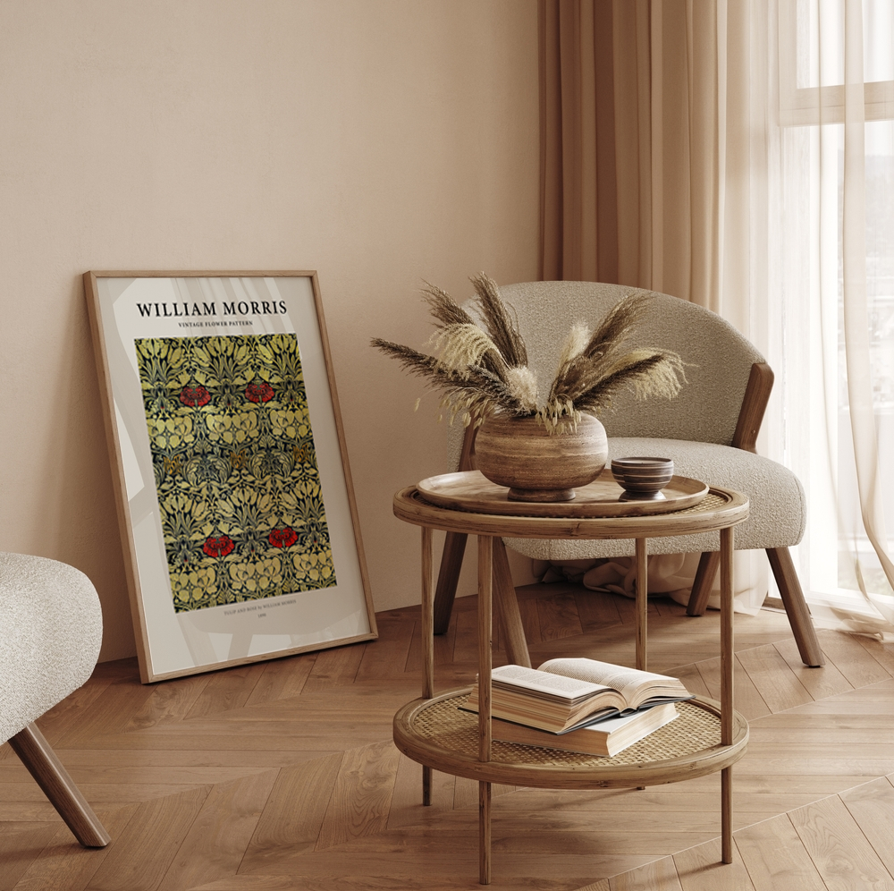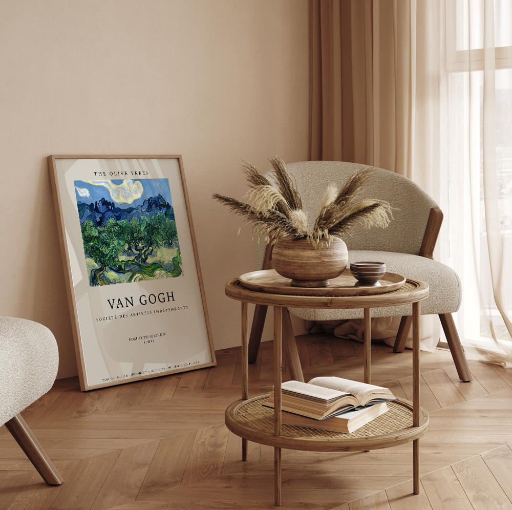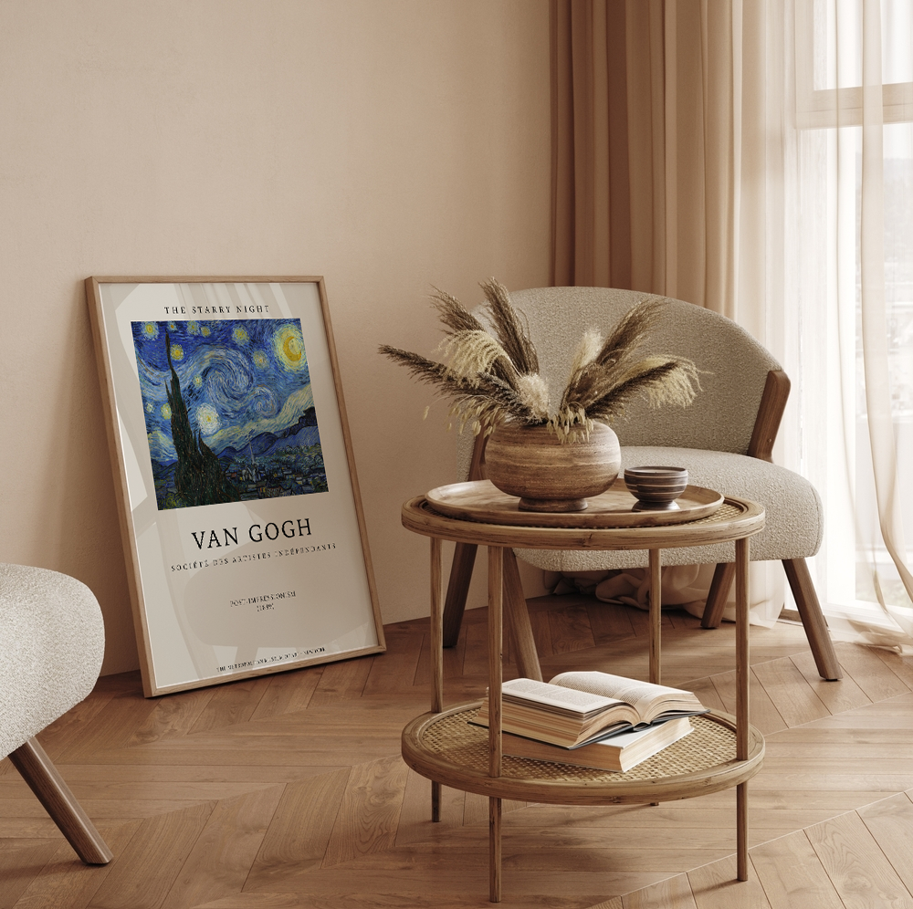 Här hittar du konstverk av flera kända målare och konstnärer, såsom Van Gogh, Hilma af Klint och William Morris.